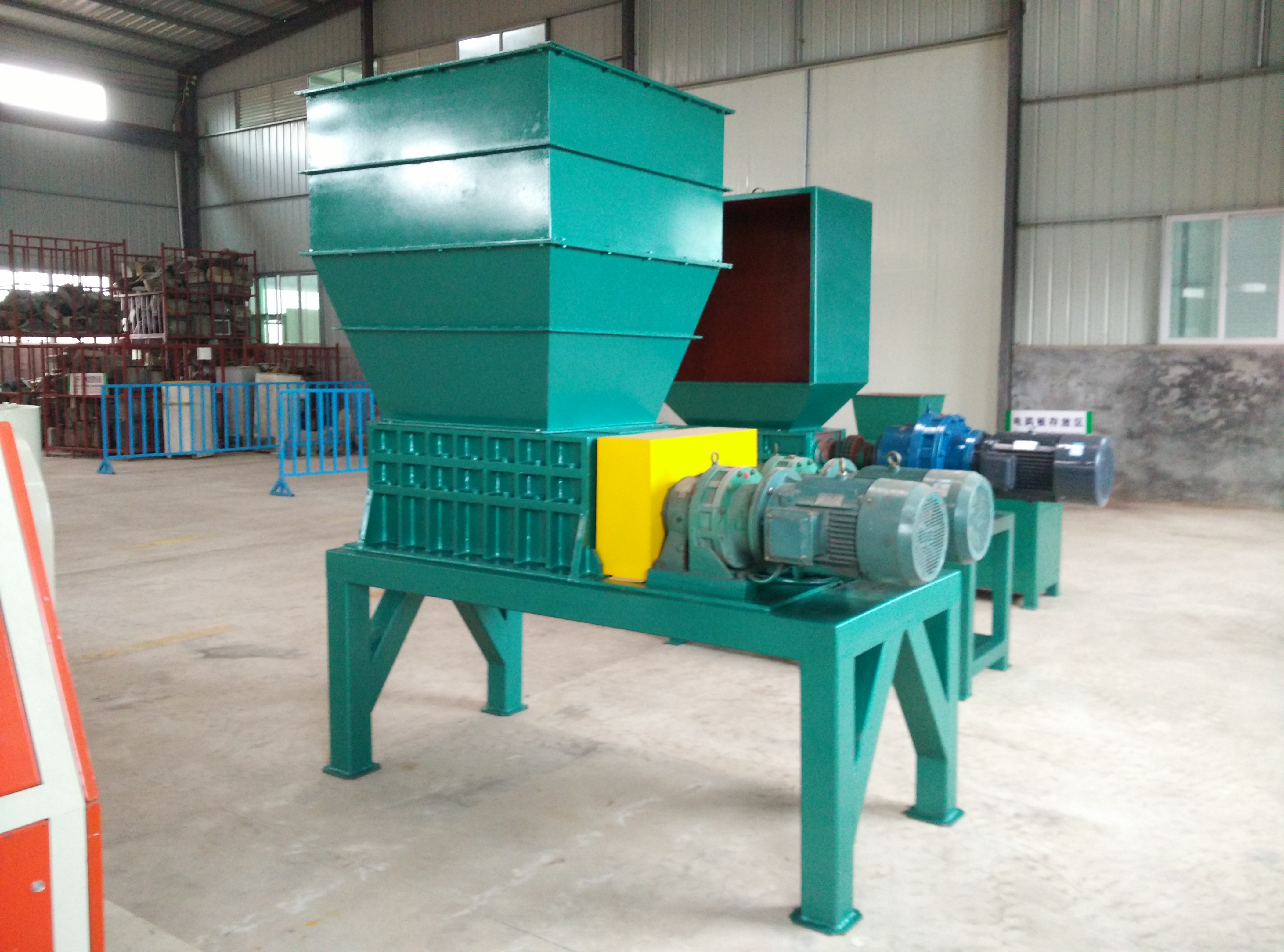 該機設計新穎、噪音低、扭矩大、用途廣,在破碎過程中,具有拉切、扯斷、擠壓、自動退料,能使各種塑料、廢電線、電纜、印刷電路板、廢舊冰箱、洗衣機、空調、電視、電腦等家電及打印機、復印機、傳真機等辦公用品。廢舊橡膠、工程樹脂、城市廢物、木材、管材、粗大塊料破碎之用,每小時處理量1-10噸。