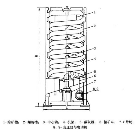 一款利用礦漿在螺旋回轉運動中產(chǎn)生的慣性離心力實現(xiàn)輕重礦物分選的重選設備。