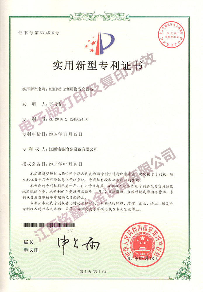 廢舊電路板干式回收成套設備- ZL20150779760.7