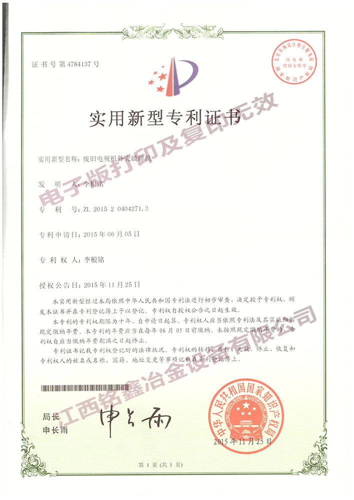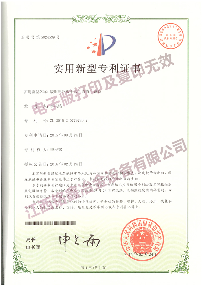 廢舊電路板干式回收成套設(shè)備- ZL20150779760.7
