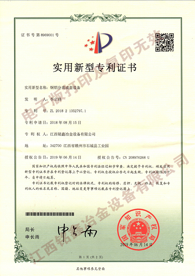 銅鋁分離成套設(shè)備-ZL201821352797.1